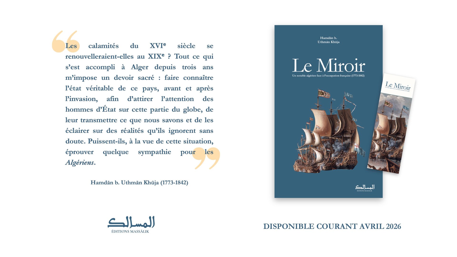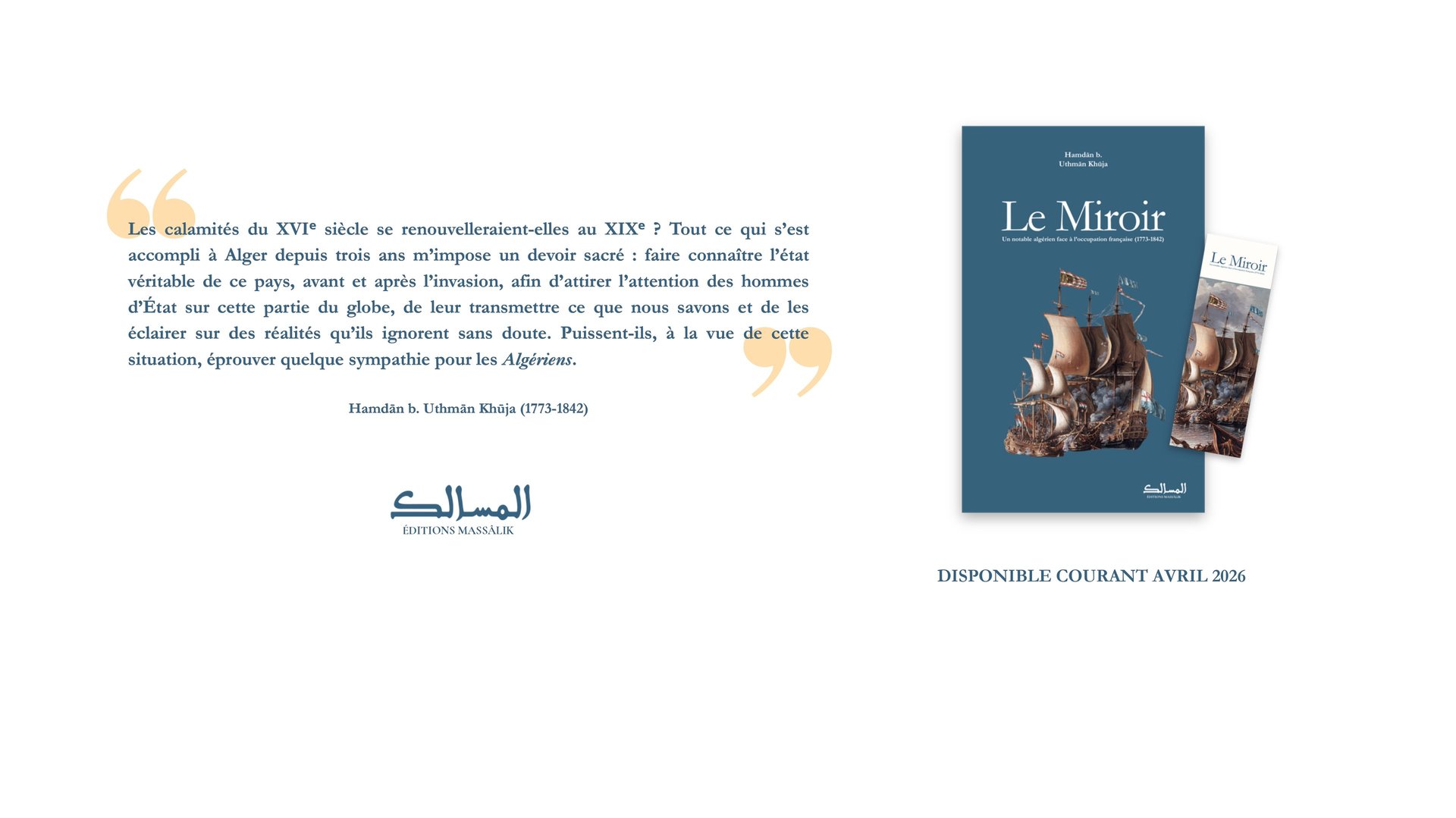 Les Éditions Massālik sont une maison d’édition canadienne indépendante, créée en 2026, spécialisée dans l’étude du monde musulman. Elles développent un catalogue principalement consacré à l’histoire, tout en accueillant des travaux relevant d’autres disciplines des sciences sociales.